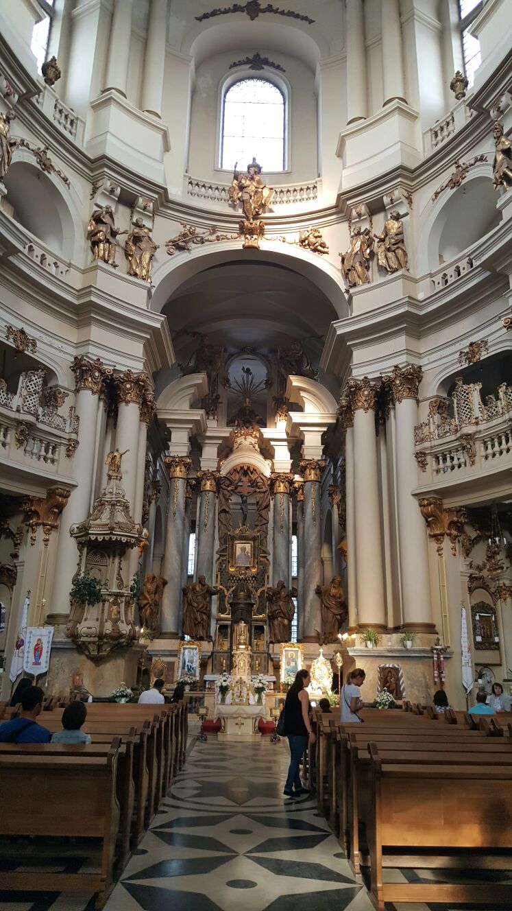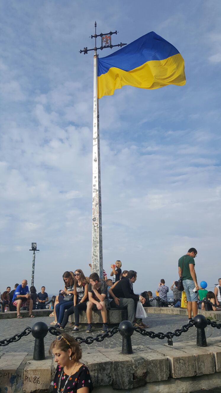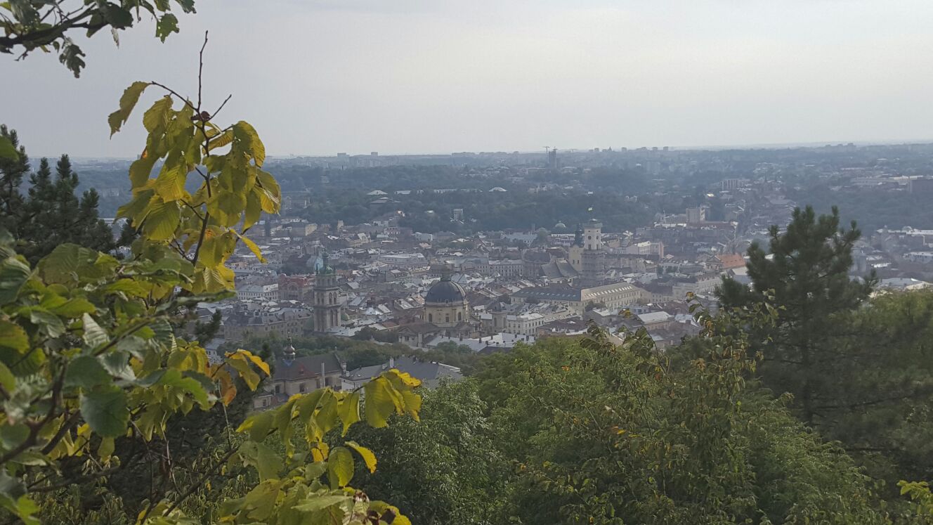 ’s Middags kwelde ik mezelf met de beklimming van een bergje met de overblijfselen van het Hoge Kasteel van Lviv. Het kasteel is in 1360 gebouwd door koning Casimir III van Polen en in de daaropvolgende eeuwen talloze malen verwoest en weer opgebouwd door Kozakken, Mongolen, Turken, Russen en Zweden, maar met de precieze details zal ik jullie niet vervelen. Na een beklimming van ongeveer een halfuur achter een gezin met twee jengelende kinderen bereikte ik de top, waar ik onder een gigantische obligate Oekraïense vlag een prachtig uitzicht had op de stad. Behalve door toeristen werd dit uitkijkpunt, net zoals het hele pad ernaartoe, bevolkt door Oekraïense jongeren die in groepjes afschuwelijke muziek zaten te luisteren, op hun telefoons keken en stukken pizza aten. Europese taferelen dus.