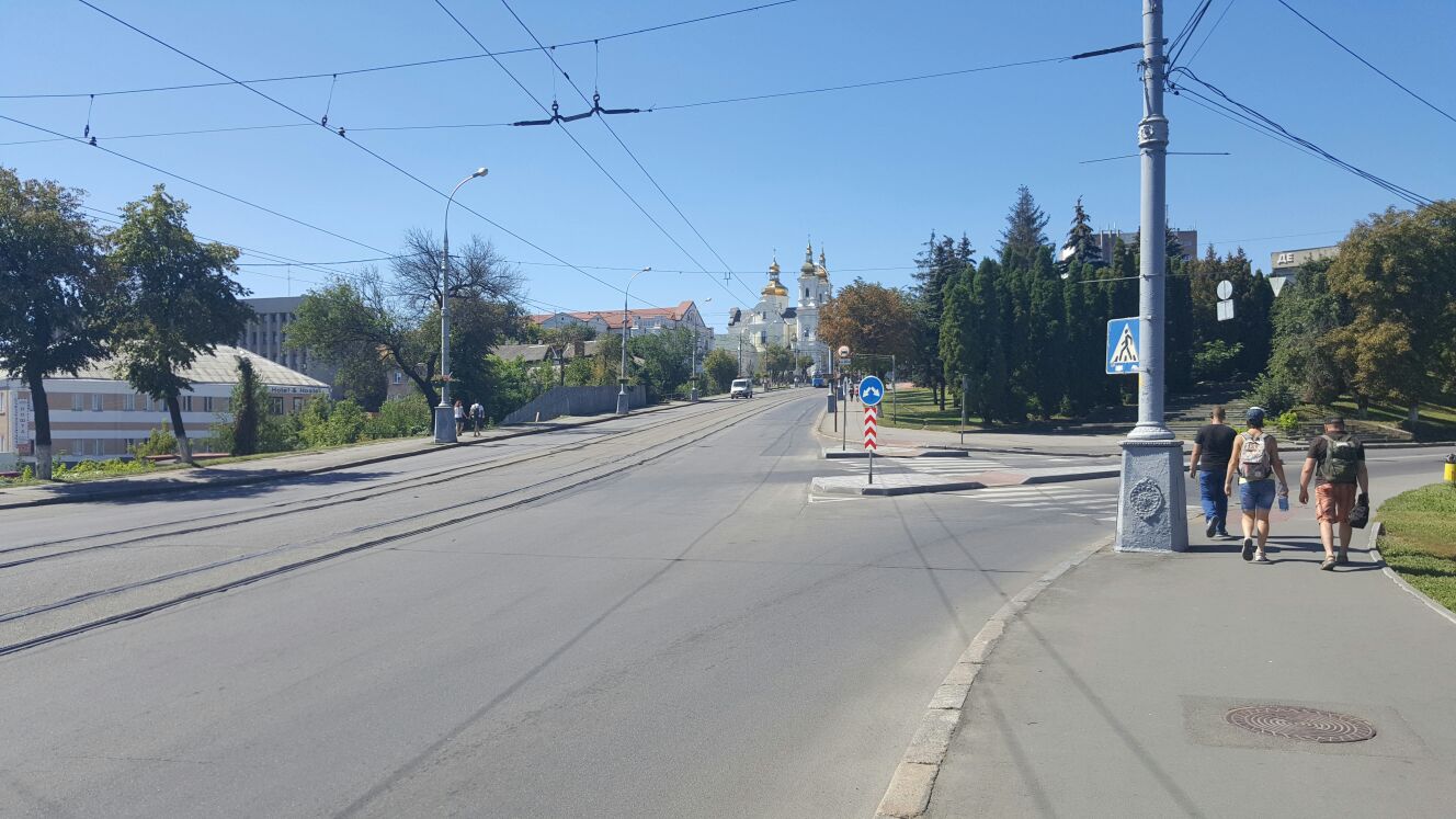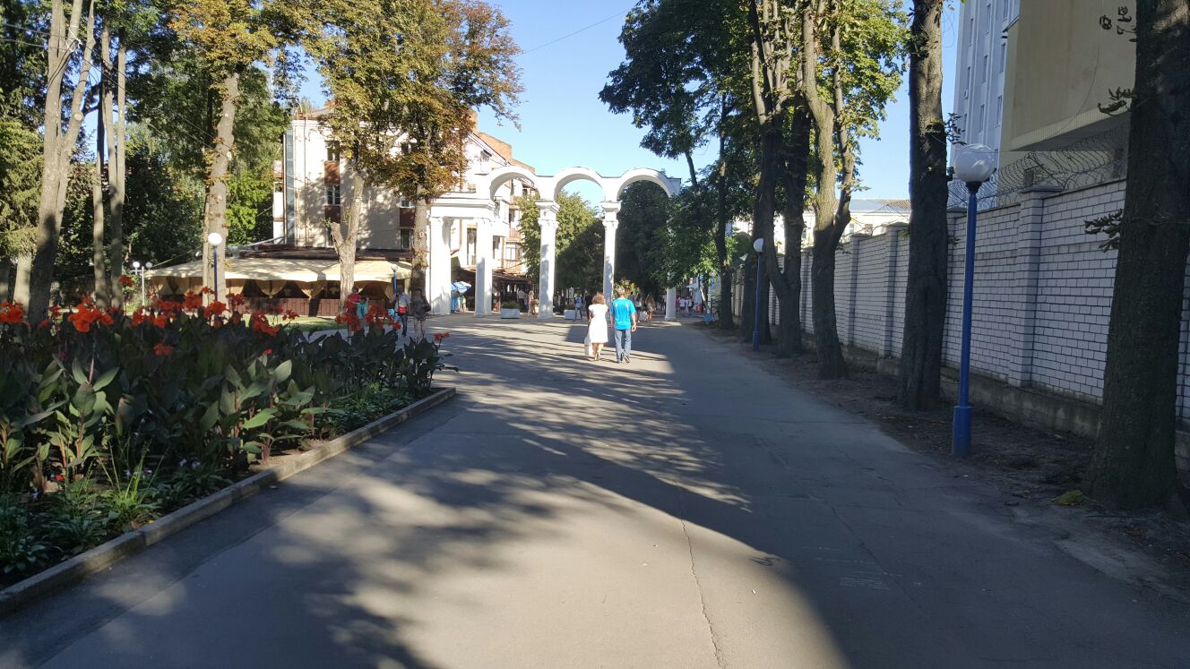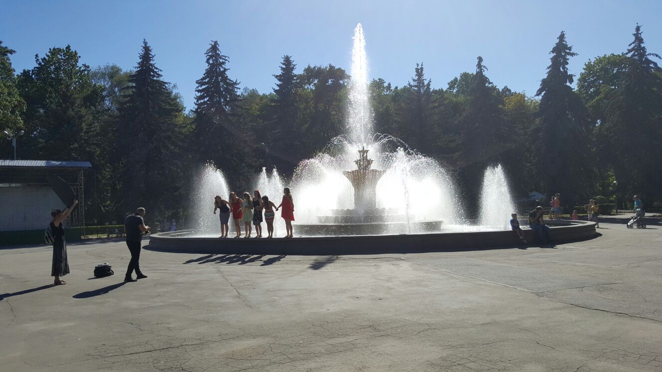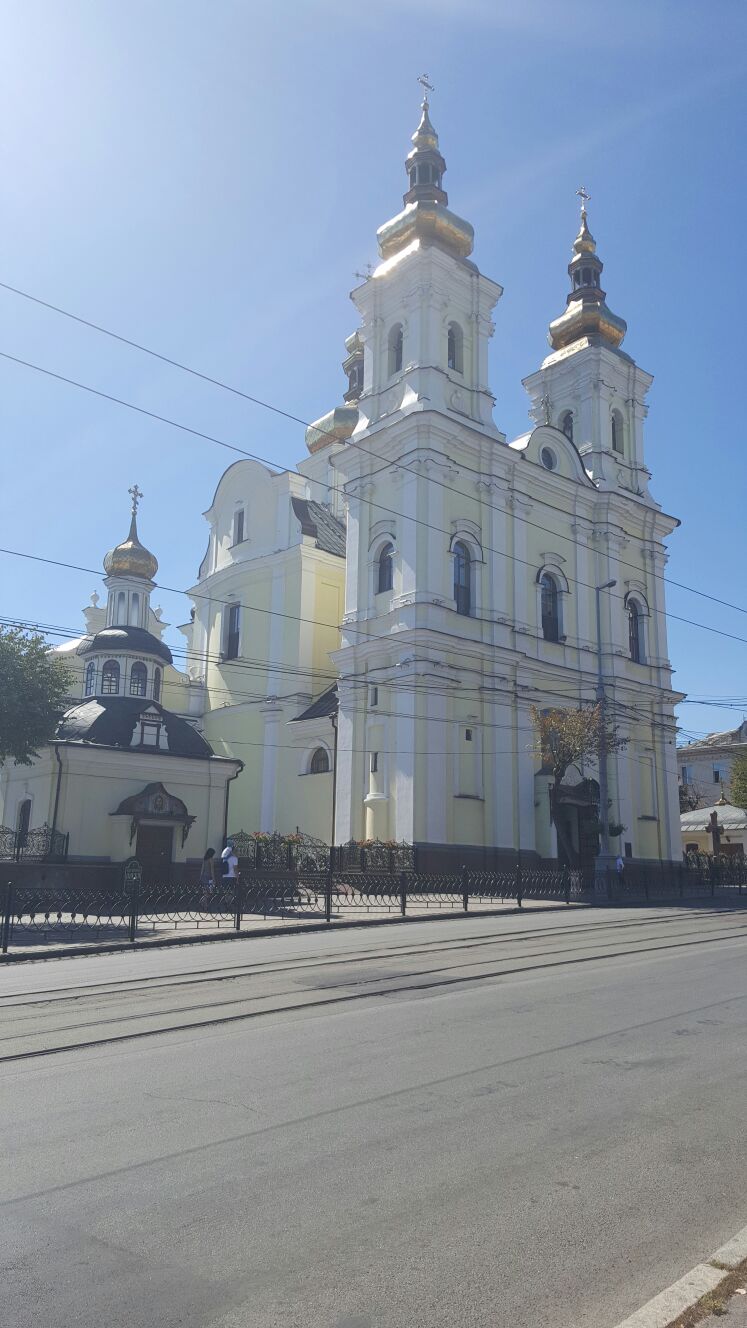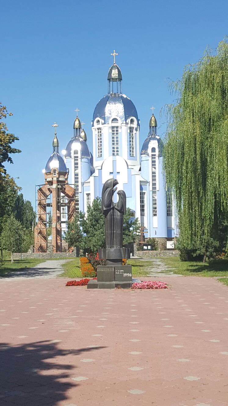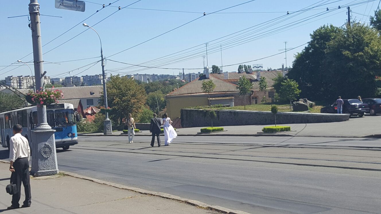 In Vinnytsja aangekomen werd ik direct meerdere keren aangesproken door mede-toeristen die me de weg vroegen naar het centrum. Ik legde elke keer netjes uit dat ik hier ook niet vandaan kwam en nam uiteindelijk een verdwaald oud echtpaar op sleeptouw dat de wanhoop en een echtscheiding nabij was. Google Maps deed wederom wonderen. We passeerden een knalblauwe glitterkerk die eruit zag alsof hij door een driejarig meisje was ontworpen en een gigantisch standbeeld van een raket in de Oekraïense kleuren. Vinnytsja is op het eerste gezicht een typische Sovjetstad met brede wegen, grauwe flats en veel lelijkheid. Bij een kerk vlakbij het centrum bleef ik even staan kijken naar de trouwfoto’s die werden gemaakt van een bruidspaar. “Lachen, lachen!” bleef de fotograaf maar roepen. Is ook heel moeilijk voor de mensen hier. Het kleine centrum van de stad staat in schril contrast met de wegen ernaartoe: het is groen, oud en mooi. Op een terrasje werd me een onaangename verrassing in de vorm van de menukaart overhandigd: alle tekst was in het Oekraïens en Pools. Ik besloot me niets van de kaart aan te trekken en in het Russisch iets te bestellen wat ze vast wel hadden. De truc werkte.