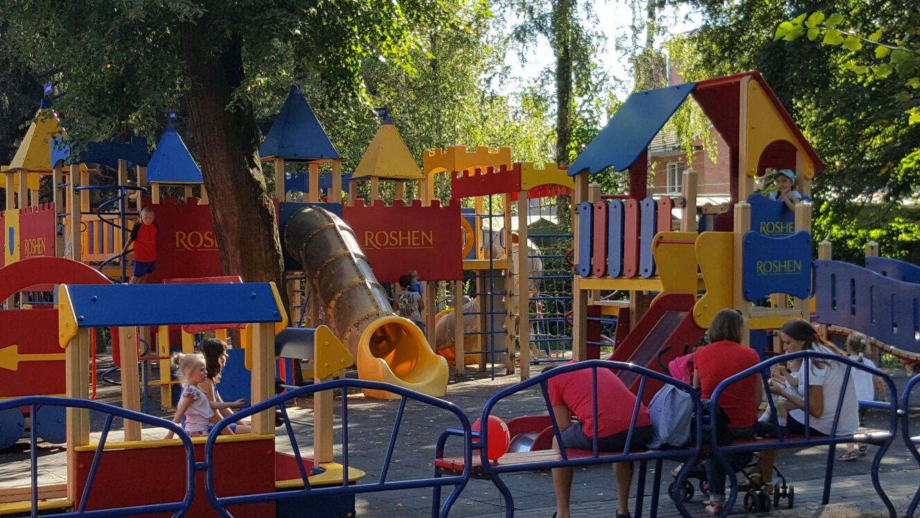 De rest van de dag struinde ik rond door deze stad, die tot mijn plezier vrijwel geheel gesponsord door Roshen bleek te zijn, het bescheiden chocoladebedrijfje van de president. Een van Roshens grootste fabrieken staat in Vinnytsja en wandelend door de straten van de stad passeerde ik Roshen-speeltuintjes, Roshen-fonteinen en een Roshen-park. Op elk glijbaantje was het logo van Roshen geplakt. Ergens moest ik denken aan de Russische vlaggen die ostentatief op gebouwen op de Krim gehesen zijn. Maar dat is weer een heel ander verhaal.