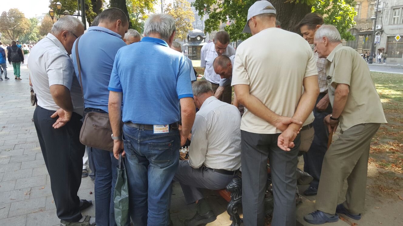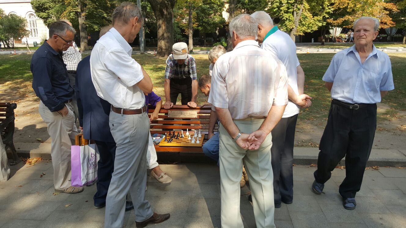 Terug naar Lviv. Een van de leukste dingen aan de stad vond ik de groepjes oude mannen die zich in het centrum bij bankjes om schaakborden verzamelden en de gespeelde partijen bekeken met een gretigheid alsof ze Fischer en Spasski aan het werk zagen. Nu moet ik toegeven: de partijen waren van een vrij hoog niveau. Sommige mannen hadden zelfs schaakklokken meegenomen en bedienden die met een agressie die je normaal gesproken alleen op toernooien ziet. Helaas was mijn verblijf in Lviv te kort om ook mijn innerlijke Kasparov te ontketenen.