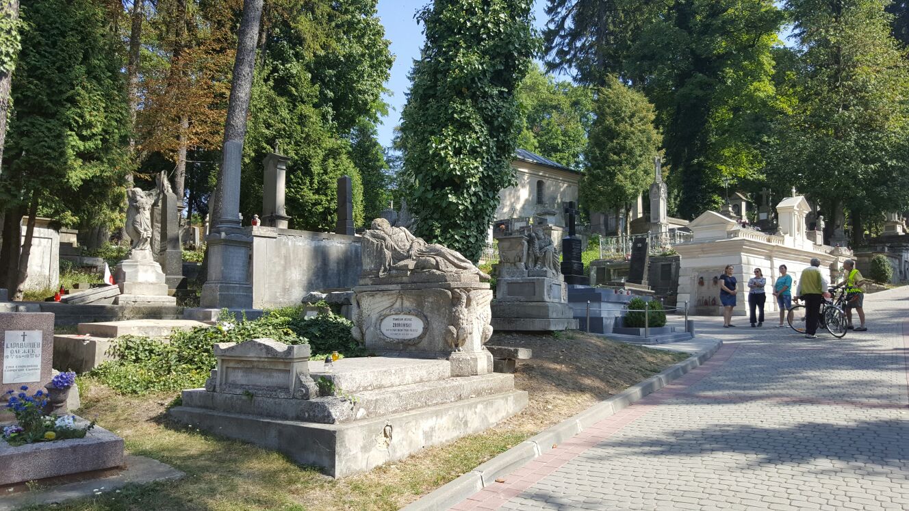 Toen ik Sacha een paar dagen eerder had verteld dat ik van plan was om naar Lviv te gaan, kwam hij tot mijn genoegen direct op de proppen met een curieuze tip: er was een beroemde begraafplaats in Lviv die ik zeker moest bezoeken. Nu ben ik altijd wel in voor morbide uitjes, dus liep ik zondagochtend met de hulp van Google Maps door een bloedhete stad naar de Lychakiv-begraafplaats. De Lychakiv-begraafplaats is een van de oudste en mooiste begraafplaatsen in Europa. Ze wordt al bijna 350 jaar gebruikt en de meer dan 300.000 graven en tombes zeggen veel over de multi-etnische geschiedenis van de stad. Er liggen Oostenrijk-Hongaren, Polen, joden, Oekraïners en Duitsers. Het is onmogelijk om alle talen op de grafstenen te tellen. Ik kwam zelfs een aantal onmiskenbaar Nederlandse namen tegen. Er zijn speciale gedeeltes voor soldaten die zijn omgekomen tijdens de Novemberopstand van 1830, voor slachtoffers van de Eerste Wereldoorlog, voor Polen die zijn omgekomen in de Pools-Oekraïense oorlog van 1918 tot 1919 en voor Sovjetsoldaten én Amerikanen die gesneuveld zijn in de Tweede Wereldoorlog. Zoals op alle orthodoxe begraafplaatsen wordt er veel aandacht besteed aan grafmonumenten. De overledenen worden uitgebeeld in karakteristieke poses of met objecten die een grote rol in hun leven hebben gespeeld. De begraafplaats strekt zich uit over 42 hectare en kan niet anders beschreven worden dan als een prachtige, vredige plaats. Zo. Reisgidsmodus off.